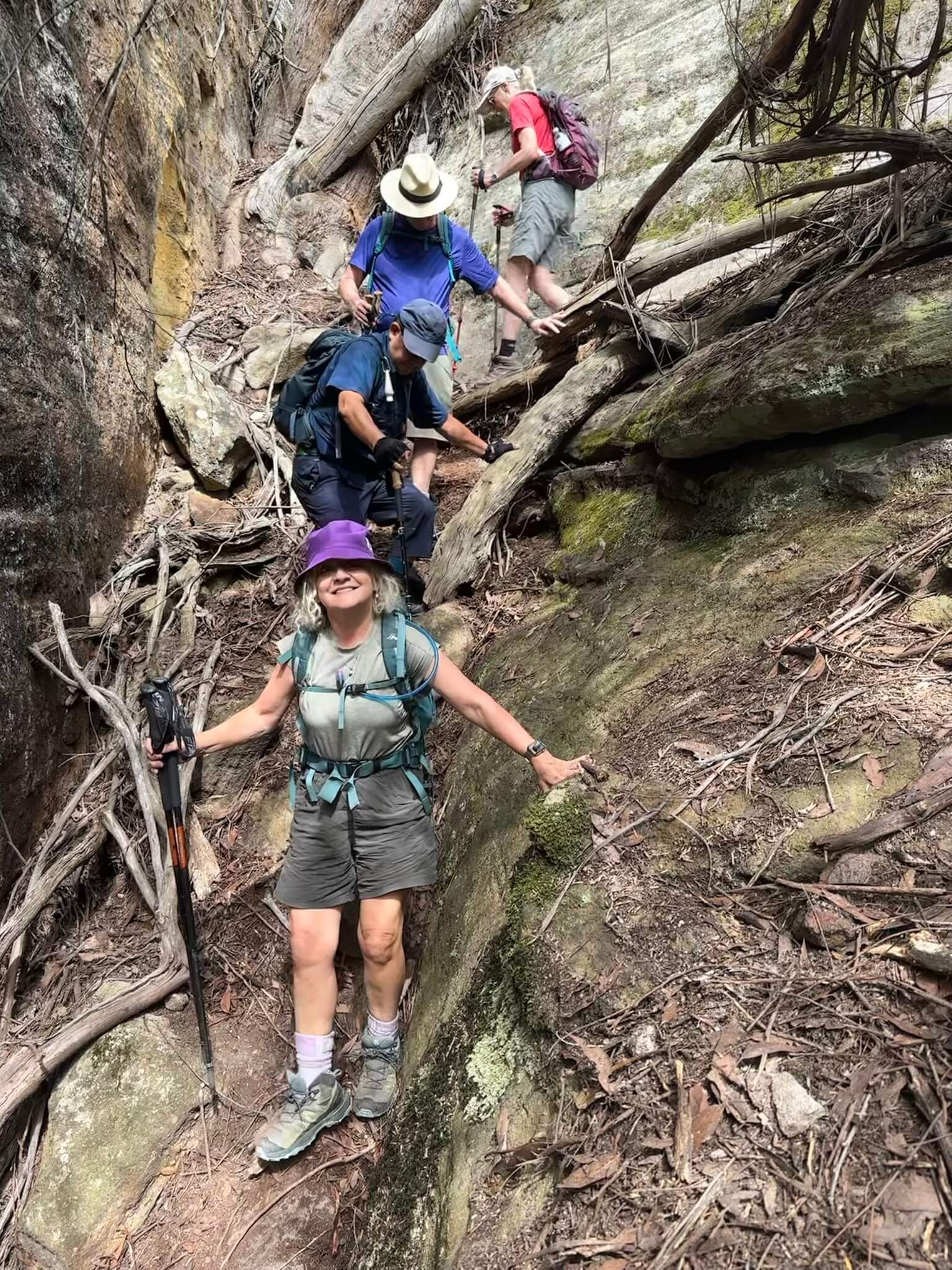 HIKE 1: Saturday Morning - The Hidden Canyon -- we hike through a forest down into the valley ., and here we find an amazing DRY canyon .. we take out time to explore this beautiful canyon and continue through the the end where we can look over the valley floor below. Out and back track 4km